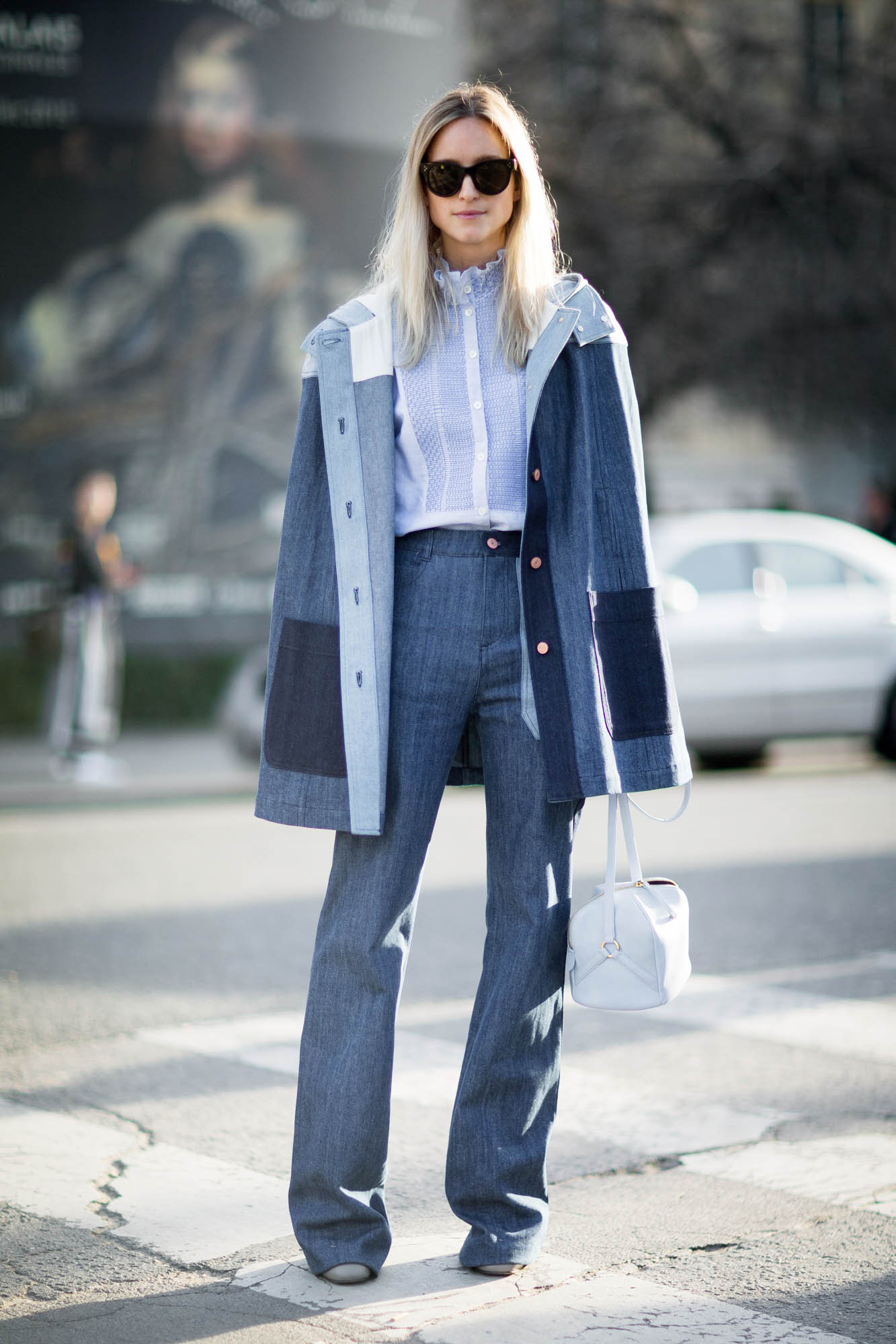 See by Chloe denim cape, jeans and blue shirt (FW15, in-stores later this year) // Manufacture Pascal bag // Celine sunglasses // Gucci boots.